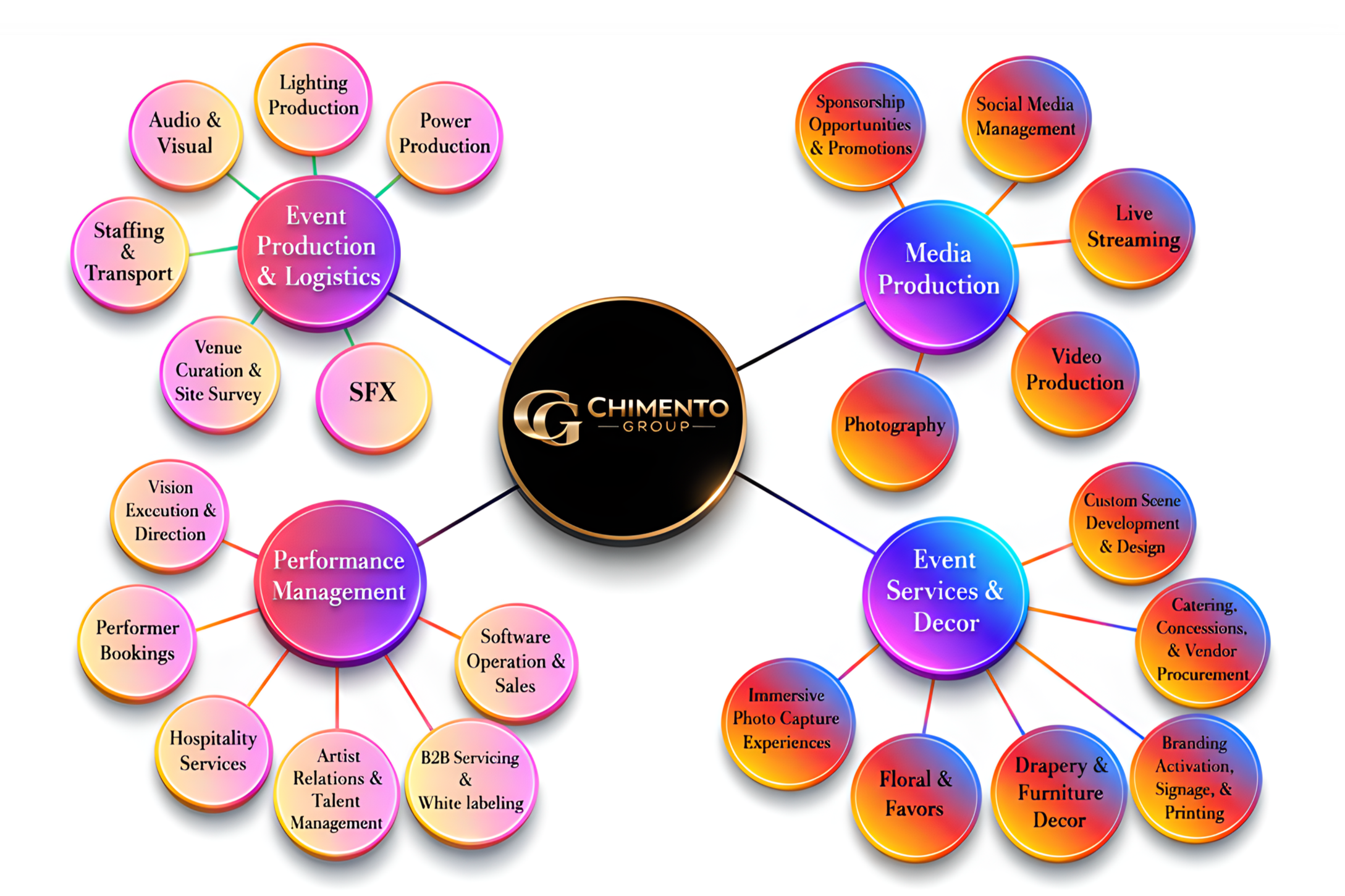 At Chimento Group, we don’t just manage events; we curate experiences. By integrating production, performance, media, and decor under one parent organization, we eliminate the friction of traditional planning. We are more than a service provider—we are your strategic partner in the event industry.